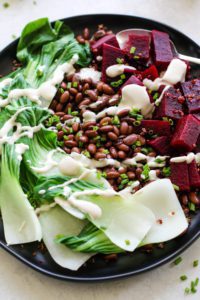 Black Soy Bean, Beet, & Bok Choy Bowl with Garlic Ginger Tahini Dressing-10 April 17, 2018 By Flora & Vino Leave a Comment