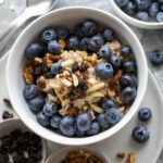 - Serve the oats warm in a bowl and top with fresh blueberries, mixed nuts, dried fruit, and a drizzle of maple syrup.