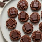 Chocolate thumbprint cookies made grain-free, gluten-free, and naturally sweetened with coconut sugar. Finish them with a melty dark chocolate center!