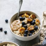 - Serve creamy cauliflower oats in a bowl and top with desired toppings. I went with almond butter, blueberries, caramelized banana*, and chia seeds.