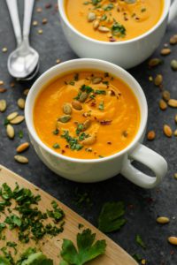 #ad// {NEW!} When everything else feels hard, this #ad// {NEW!} When everything else feels hard, this Thai Carrot Sweet Potato Soup feels easy. 🥕🍠🥣 It also tastes amazing and every warm spoonful is like a comforting embrace. This Thai Carrot Sweet Potato Soup is made on the stovetop with root vegetables and yellow curry paste blended with a spoonful of nut butter. I used a standing blender but you can also use an immersion blender to achieve the creamiest consistency.